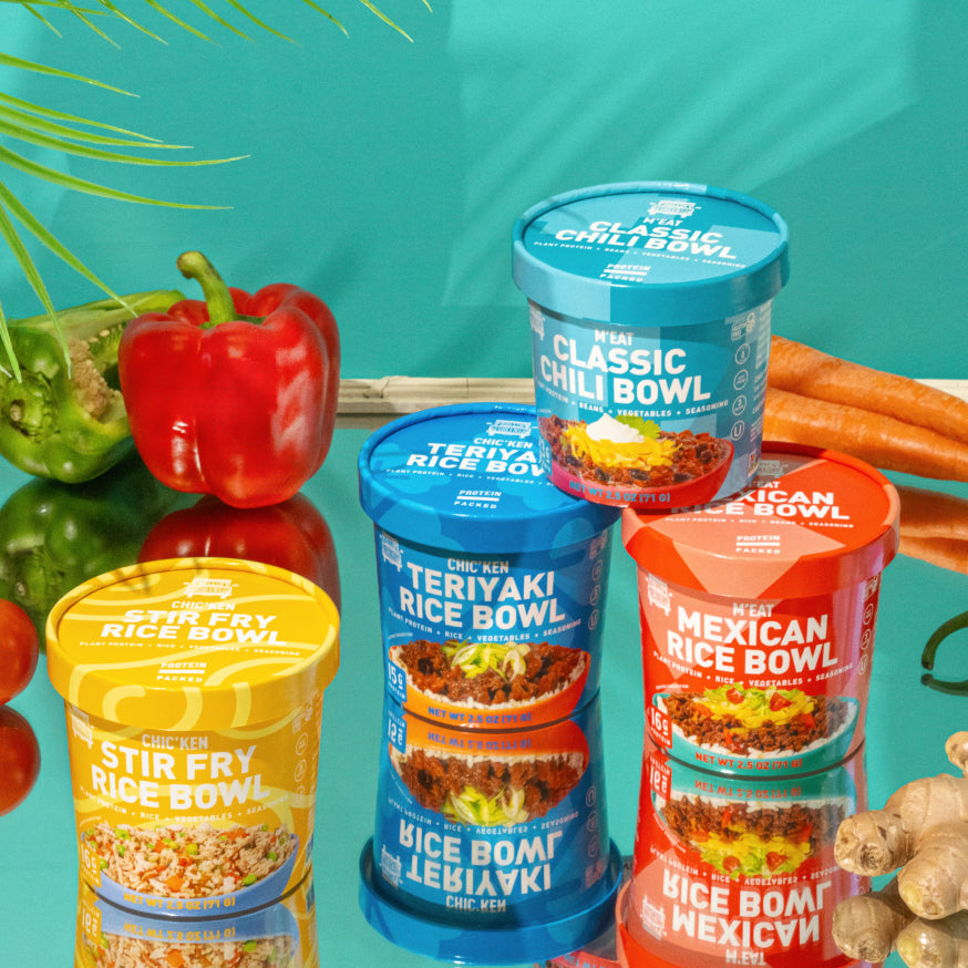 Plant-Based Bowls ready in just 3 minutes. Taste and ingredients you love. Chef Created! This shelf-stable 4-pack includes one of each flavor of our 100% plant-based bowls. Each bowl is a complete on-the-go meal with 15g to 23g of protein to keep you going. Our pea protein is sustainably USA-grown.